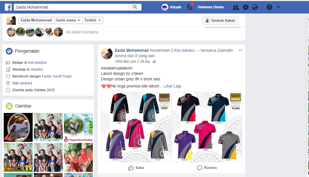 Pn. Zaida merupakan seorang suri rumah sepenuh masa dan hanya menjual pakaian online.